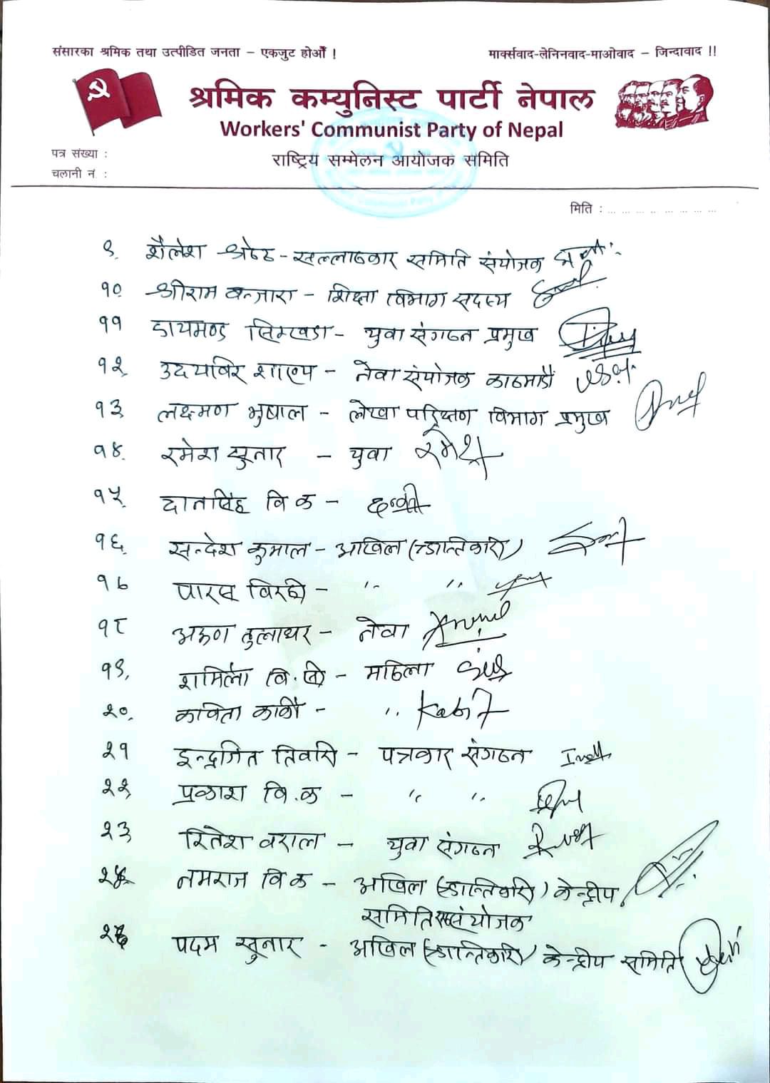 त्यसैगरी, सल्लाहकार समिति संयोजक शैलेश श्रेष्ठ, शिक्षा विभाग सदस्य श्रीराम बन्जरा, युवा संगठन प्रमुख डायमण्ड सिम्खडा, नेवा काठमाडौं संयोजक उदयविर शाक्य, लेखा परीक्षण विभाग प्रमुख लक्ष्मण भुषाललगायत रहेका छन्।