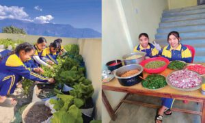 दिवा खाजाका लागि विद्यालयको कौसीमा तरकारीखेती