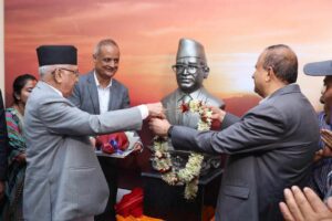 प्रधानमन्त्रीद्वारा जननेता मदन भण्डारीको अर्धकदको प्रतिमा अनावरण