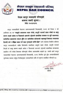 आचारसंहिताको पालना गर्न नेपाल कानून व्यवसायी परिषदको सूचना