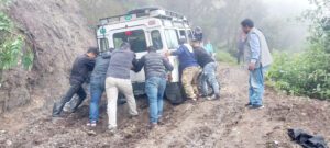 गाडी ठेल्दै यात्रु…