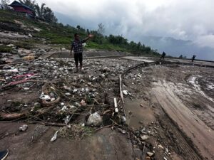 वर्षाले खाँदबारी–नुम सडकमा क्षति