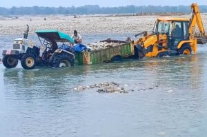 महाकाली नदीको टापुमा ट्र्याक्टरसहित थुनिए मजदुर