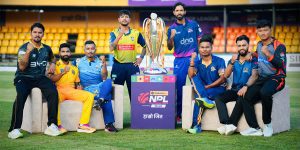 सभापति देउवा र अध्यक्ष प्रचण्ड-एनपिएलको च्याम्पियन ट्रफी उचाल्दै
