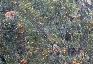 बाँदरले सुन्तला नष्ट गर्न थालेपछि कृषक चिन्तित