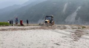बाढीले थुपारेको गेगर हटाउन सहयोग गर्दै हलेसी तुवाचुङ नगरपालिका