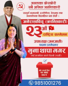अखिल क्रान्तिकारीको जनजाति तर्फको उपाध्यक्षमा मुना थापा मगरको उम्मेदवारी