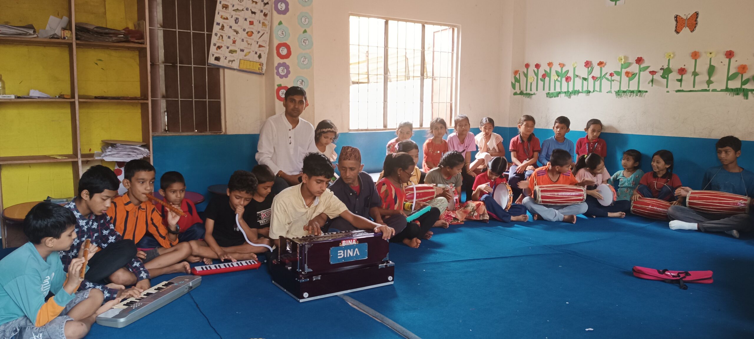 मोबाइल हेर्ने बानी हटाउन बालबालिकालाई सङ्गीत कक्षा