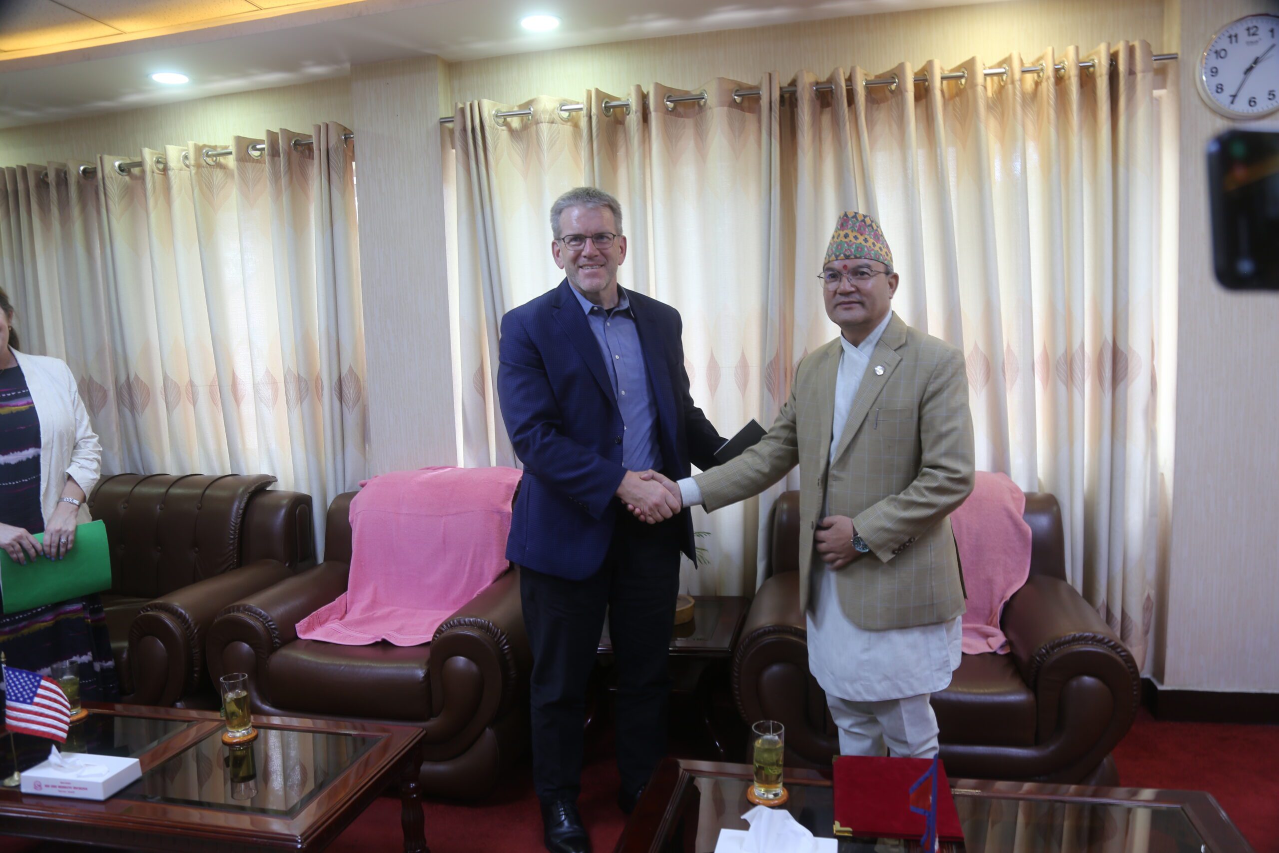 वनमन्त्री ठकुरीसँग अमेरिकी राजदूत थम्प्सनको भेट