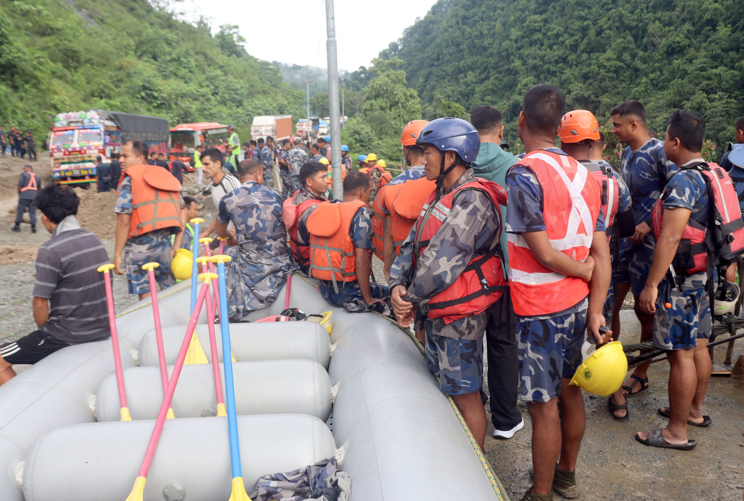 बस र यात्रु खोजका लागि परिचालन भएका सुरक्षाकर्मी