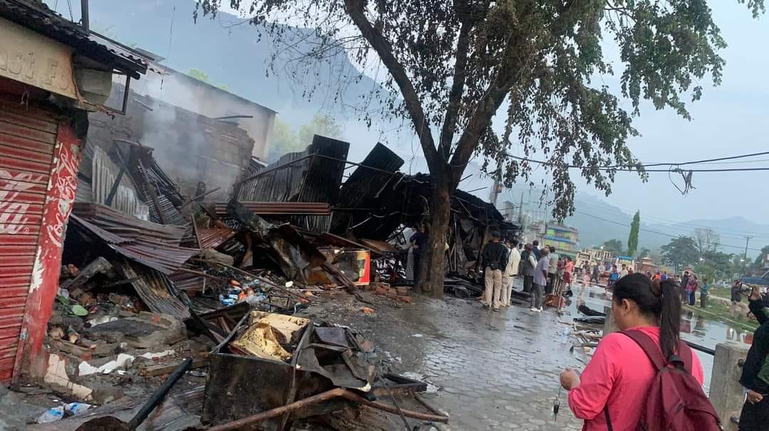 दमौलीको मुख्यचोकका सटरमा आगलागी, तीन घण्टापछि नियन्त्रणमा