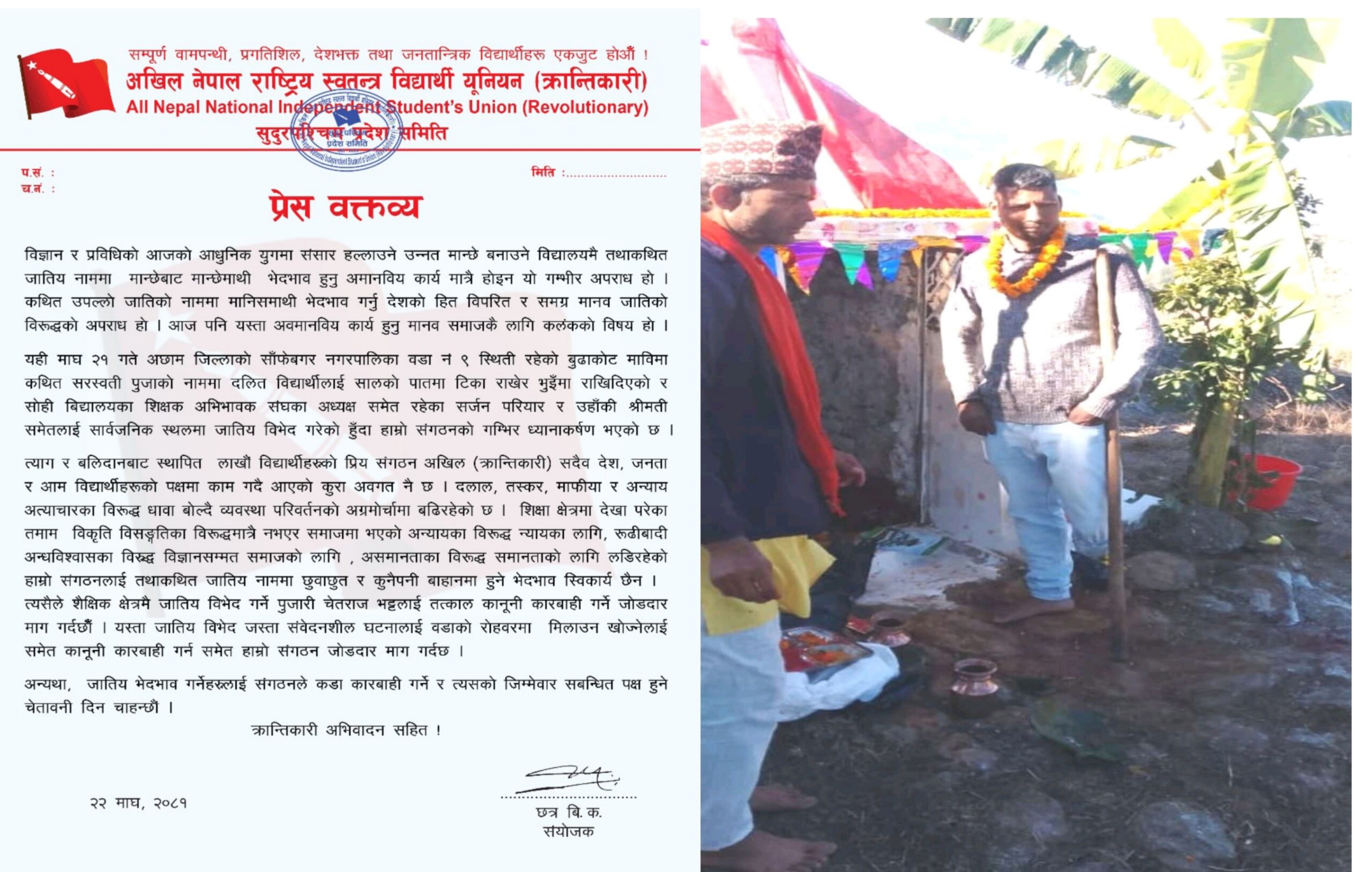 विद्यालयमा जातीय विभेदको विरोधमा अखिल (क्रान्तिकारी) को कडा चेतावनी