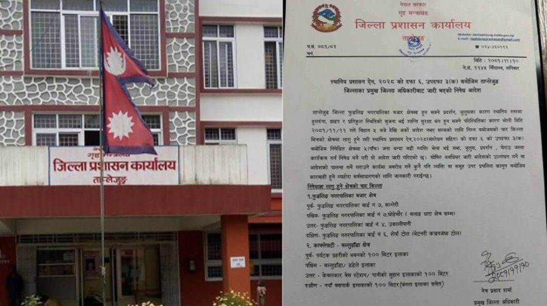 ताप्लेजुङ प्रशासनद्वारा निषेधाज्ञा जारी: चार क्षेत्रमा विशेष सुरक्षा व्यवस्था लागू