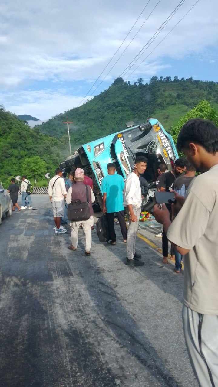 यात्रुवाहक बस दुर्घटना हुँदा १५ जना घाइते